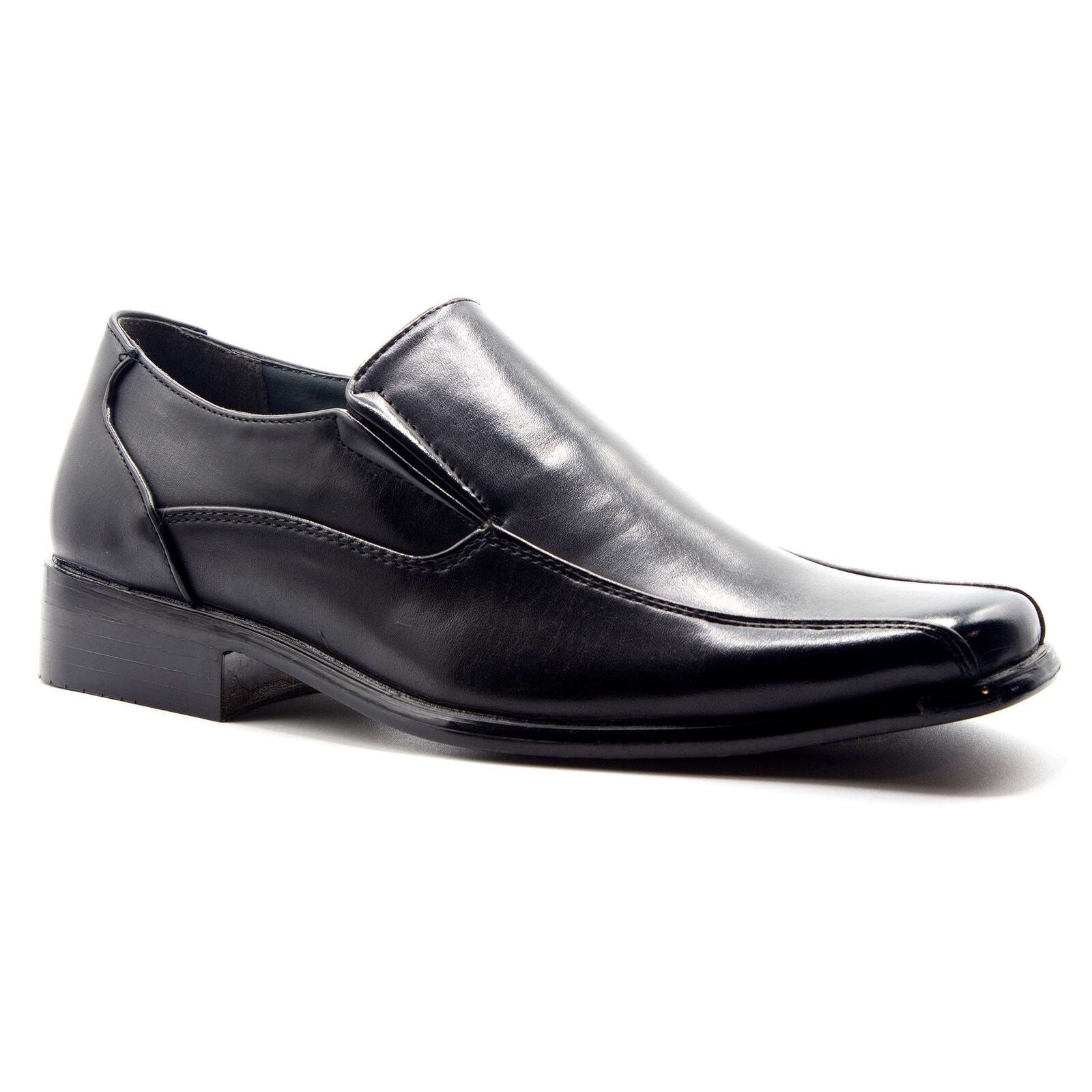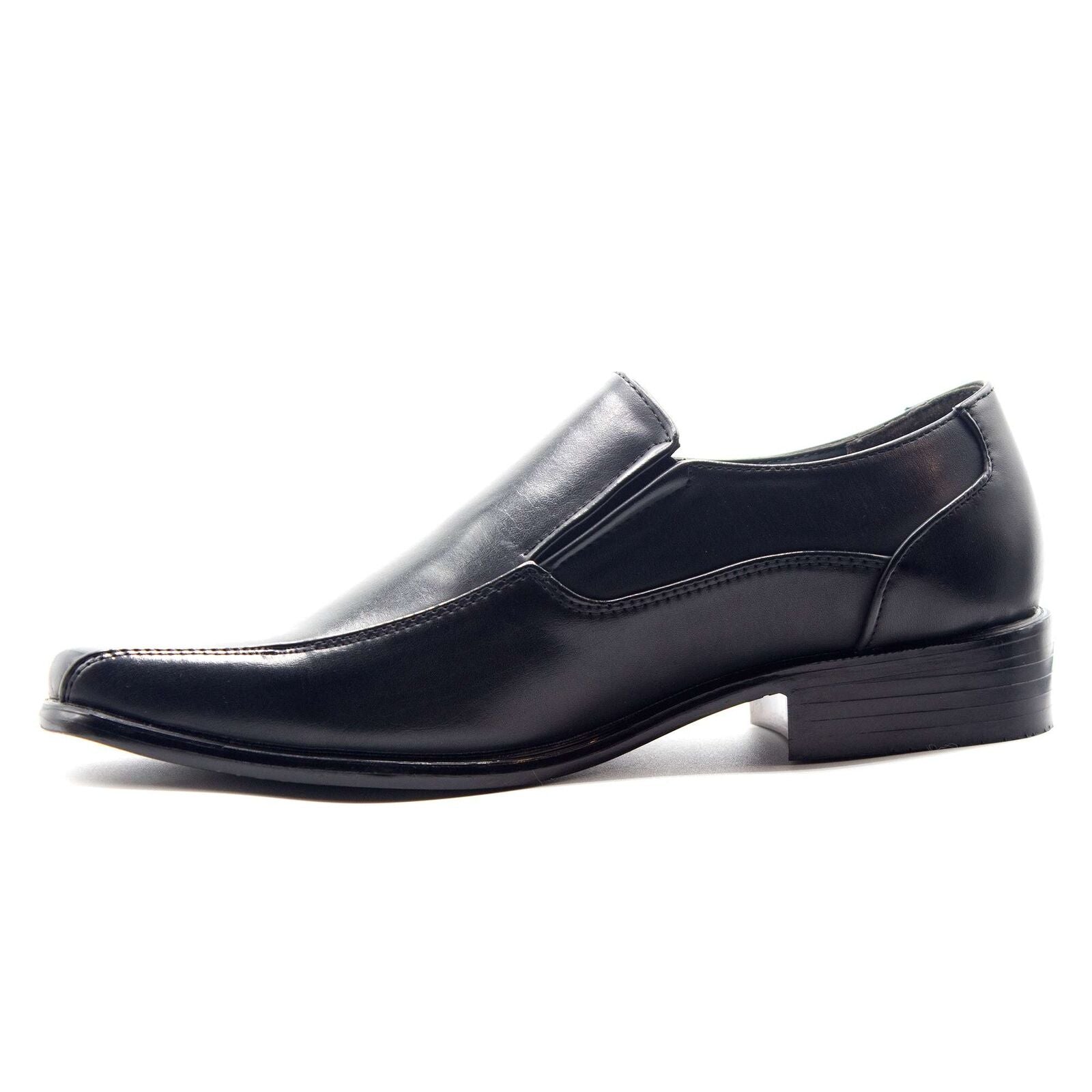 Men's Black Smooth Classic Square Toe Slip On Penny Loafers, Dress Shoes